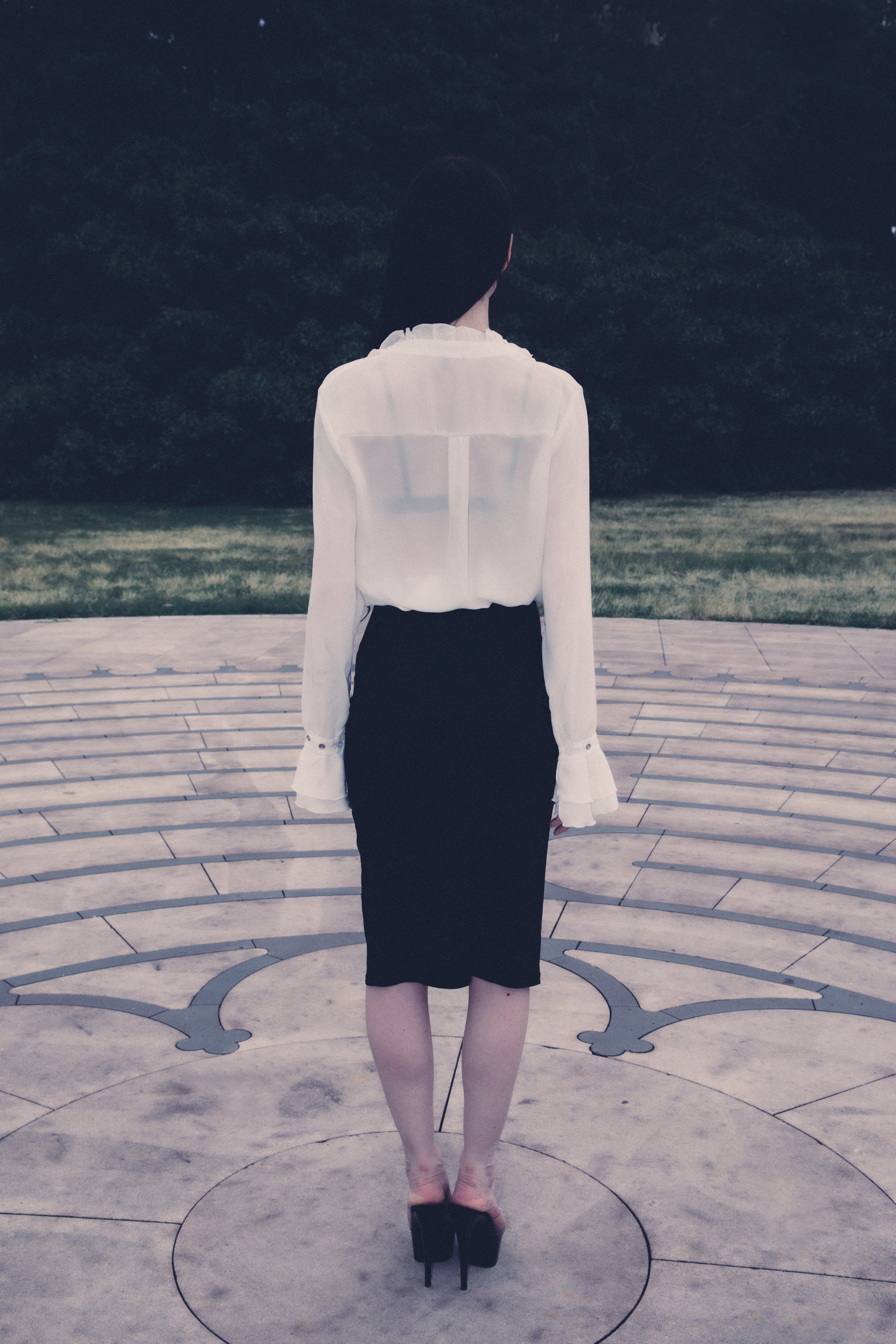 Channel the provocative elegance of Secretary (2002) in our sheer georgette blouse. Featuring metal ring details, a high neck tie and long sleeves that end in double-layered flounce cuffs finished with metal eyelets. Designed to be tucked neatly into a pencil skirt, it creates a silhouette that’s refined, feminine, and powerfully composed.
